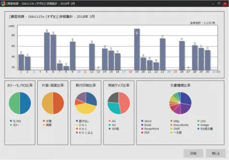 ユーザーごとの詳細集計によって、どのユーザーがどれだけの印刷を行っているかの把握が容易になります。